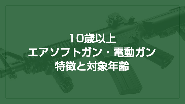 10歳以上(10禁)エアソフトガン・電動ガンは、18歳以上向けのものと比較すると、威力が抑えられていたり、作りが簡易なことが多く、10歳以上でも安全に取り扱えるようになっています。ただし、それでも十分な注意や保護者の許可が必要とされています。